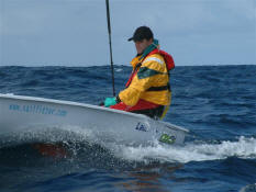 On the subject of equipment on board the Laser, I also carried bananas, PowerAde, chocolate bars, carbohydrate gels, Sustagen, coke and some Red Bull. Not nutritionally balanced but plenty of energy! I also had a sunscreen stick and bottle of water to splash on my face.