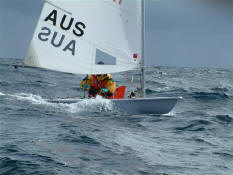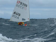 Many years sailing Lasers in all sorts of winds and waves (to 45 knots and 4-5m swells) have seen me break a few things along the way so I knew the weaknesses of a Laser. I decided on all-new gear (spars, fittings, etc.) as it is the most robust. The boat was virtually unmodified except for adding the small pouch in the cockpit, an orange patch on the sail and painting the centreboard orange (to aid identification).