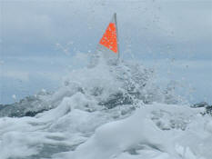 I took some goggles to deal with the spray but it didn’t end up being as bad as I thought because the waves were at such an angle to the boat as to not produce heavy spray into my eyes. However, I did cop a fair bit of water into my body and the wet weather gear did its job well.